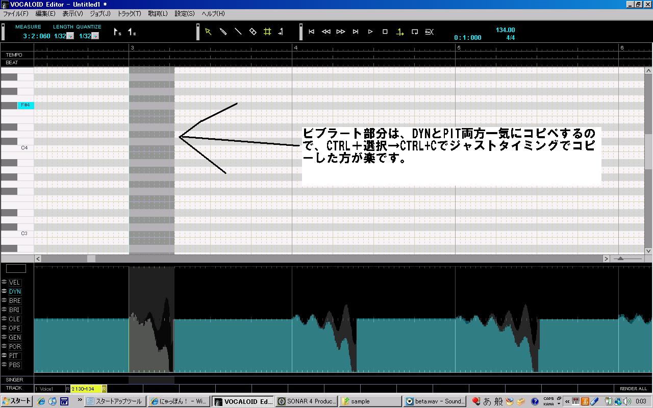 今回使ったサンプル曲がBPM134の為、追加読み込みのVSQライブラリはbpm130-134.vsqを使用します。